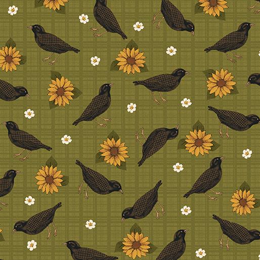 A Wooly Autumn – Birds – Green – Glory Bees Sewing Center