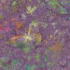 The fabric background has an assortment of purple, fuchsia, teal, lime green, lavender, pink, and yellow. The design is bumble bees in pastel turquoise blues, butter yellows, soft pinks, apricot oranges and lavender purples with a hint of spring greens – all the colors of the rainbow.