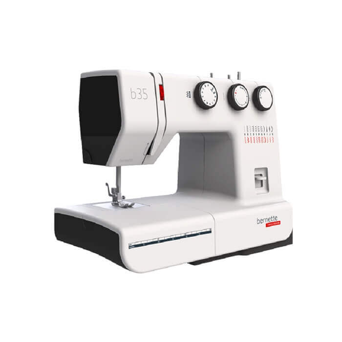 The bernette 35 is a mechanical sewing machine with no computerized controls. The width, length and pattern of the stitch is easily set by turning the three knobs. The tension can be adjusted during sewing, using an easily accessible wheel. The bernette 35 also has an automatic, 1-step buttonhole function, which is quick and easy to use. With a total of 23 stitches, including both utility and decorative stitches, you can bring your creative ideas to fruition quickly, easily and with excellent stitch quality. The bernette 35 includes seven snap-on presser feet.