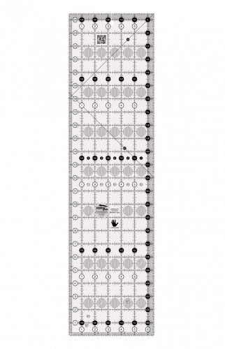 The markings on this 6.5″x24.5″ rectangle ruler are a mirror image of our right-handed ruler so lefties will no longer have to deal with numbers that are upside down and reversed! It features easy-to-read black and white markings printed in 1″ grids marked in 1/8 and 1/4 inch increments. Use the easy-to-read, black numbers (printed on white dots) and the 1/4″ grip sides to cut whole inches. The 1/4″ dashed lines printed on two adjoining sides aid in trimming seam allowances.