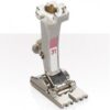 The Cording Foot with 5 Grooves #25 is a practical aid for the simultaneous couching of several parallel strands of yarn or cording. The cords are fed into the special grooves, which guide them securely. They are also held in place by a swing-out latch which prevents them tangling during the sewing process. In this way, the Cording Foot with 5 Grooves #25 lets you create glamorous trim appliqués and braid for home furnishings and garments.