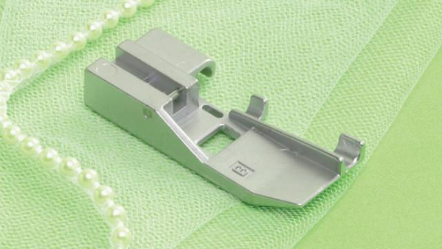 Serge pearls, piping, cording, and more to the edge of fabric with ease and speed. This one-step foot will give all of your surface embellishments a professional finish.