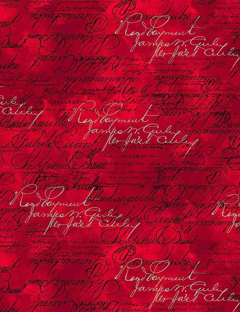 French Script Red – Timeless Treasures – Glory Bees Sewing Center