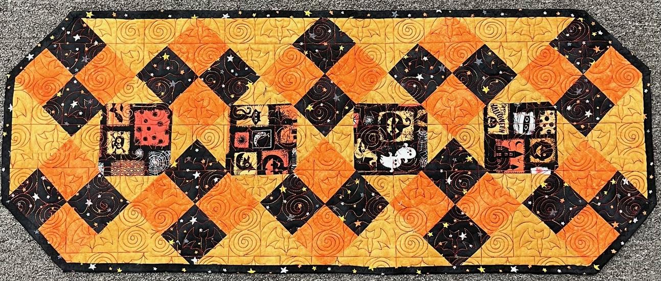 Check out this spooky fabric kit to make the Fun Four-Patch Table Runner from Cut Loose Press.