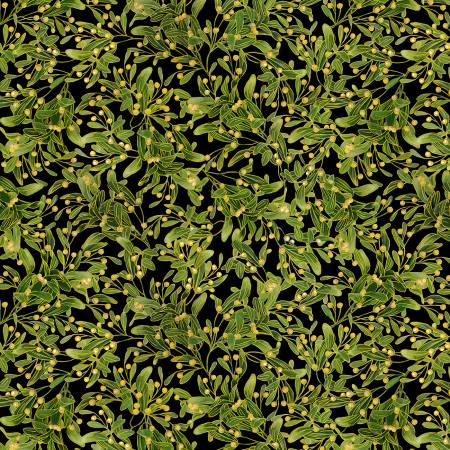 Holiday – Green Packed Poinsetta Leaves Gold Metallic