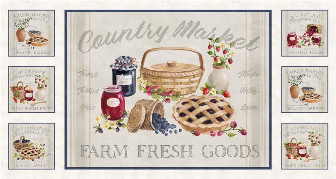 Farmhouse-style done perfectly in this complete collection from Silvia Vassileva. You’ll love the classic color palette and beautifully rendered artwork! The main panel provides two sizes of blocks that can be used to make a table mat and coordinating hot pads OR it’s perfect to make a quilt as well. There are two apron panels – choose your color! Plus, two sets of 18″ blocks – great to make pillows, placemats or chair pads (trim to use the round center section). The coordinate prints not only enhance the panels but stand on their own…you’ll want to buy each of the gingham prints to have on hand for lots of projects! We’re offering two free project patterns to get you started with this lovely fabric collection.