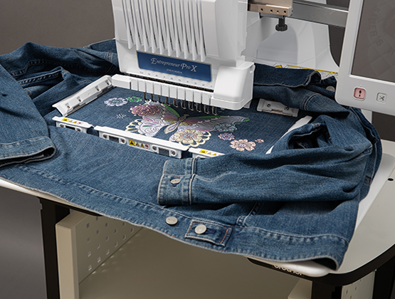 Hoop thick materials with ease. Avoid fabric shifting and the need to rehoop the fabric when connecting designs or embroidering large areas. Simply slide the fabric on the frame for the next area to be embroidered.