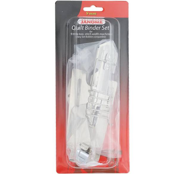 The Quilt Binder Set is the perfect accessory for quick and trouble-free binding, with a superior design based on industrial binding attachments. The cone on the front of the fabric holder feeds and folds fabric for a ½” finished binding. Two upper screws on the binding allow you to adjust the fold of the fabric – set them at the same length for a straight stitch, or set the bottom a bit further than the top for a blanket stitch.