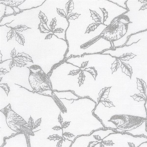 Robert Kaufman Holiday Flourish 15 – Birds White w/Metallic