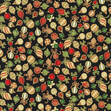Robert Kaufman Holiday Charms – Ornaments Black Christmas w/Metallic