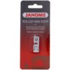 Feed your fabric through the small funnel located on the front of the foot. The funnel turns the fabric under while the needle stitches it down to create a perfect narrow hem.