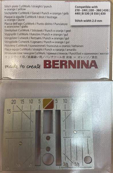 Straight stitch plate compatible with CB hook 210-240, 3 series 330-380, 430, 440, 530, 550, 630 Bernina sewing machines. For machine piecing and machine free motion quilting.