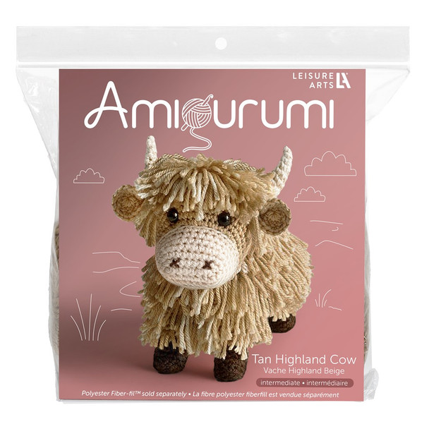 Leisure Arts Crochet Kit Amigurumi Highland Cow Tan USA- Enjoy a creative and relaxing activity while crocheting this highland cow or give it as a unique gift to someone special. This intermediate kit will help you create your very own adorable highland cow, complete with its iconic long horns and shaggy coat. Kit includes yarn, crochet hook, needle, safety eyes, and detailed instructions. Fiber fill sold separately Measures approximately 8″ tall.