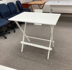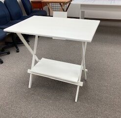 No assembly is required, it comes ready to use right out of the box! A sturdy wood construction comes in three different colors, white, light oak, or medium oak, with optional cutting mat and lower bottom shelf. With plenty of room, this lightweight table will move around with you.