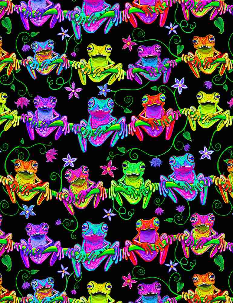 Timeless Treasurers – Neon Frogs Hanging Out – Glory Bees Sewing Center