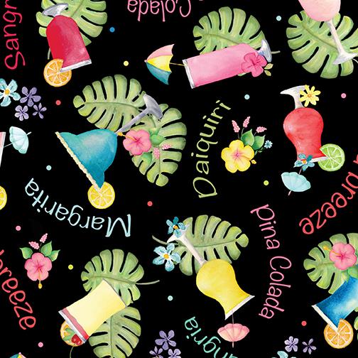 Tropical Drinks – Black – Glory Bees Sewing Center